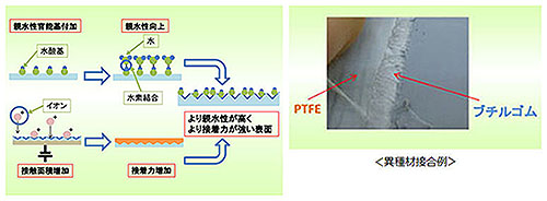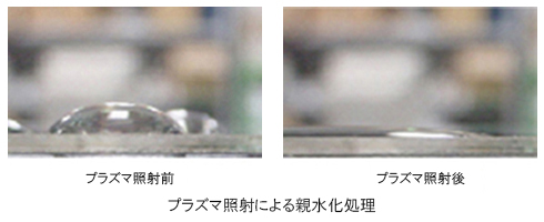 樹脂材や硝子に対して親水性向上やイオンによる物理エッチング等の表面改質
