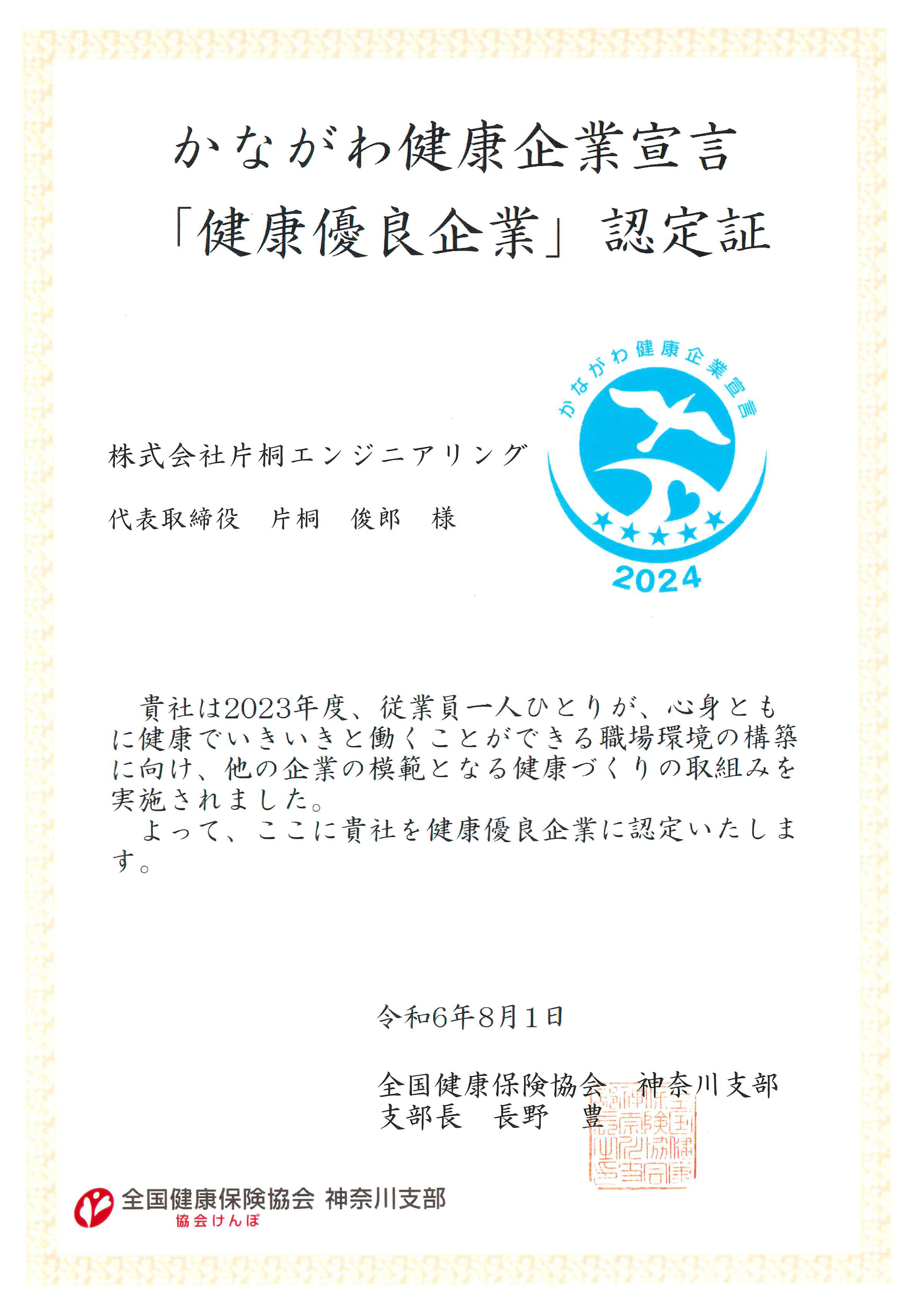 かながわ健康企業宣言「健康優良企業」認定されました。